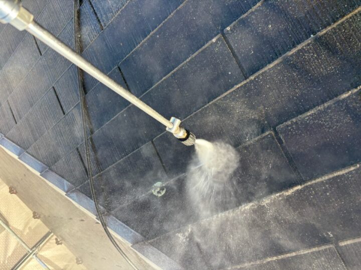業務用の高圧洗浄機を使用して、汚れやごみを洗い流します。