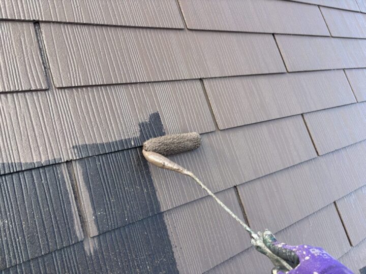 下塗りをした後、刷毛やローラーを使用し塗り残しがないよう丁寧に塗装します。