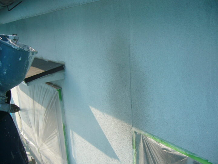 乾燥後、補修跡が目立たないようにリシンの吹き付けをし、塗装を行います。