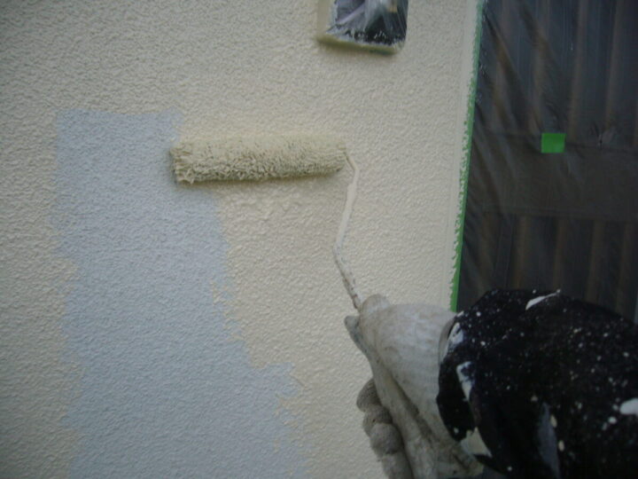外壁は下塗り合わせて3回塗です。塗り残しがないように丁寧に塗装していきます。