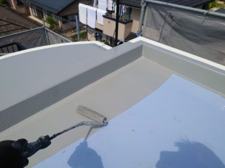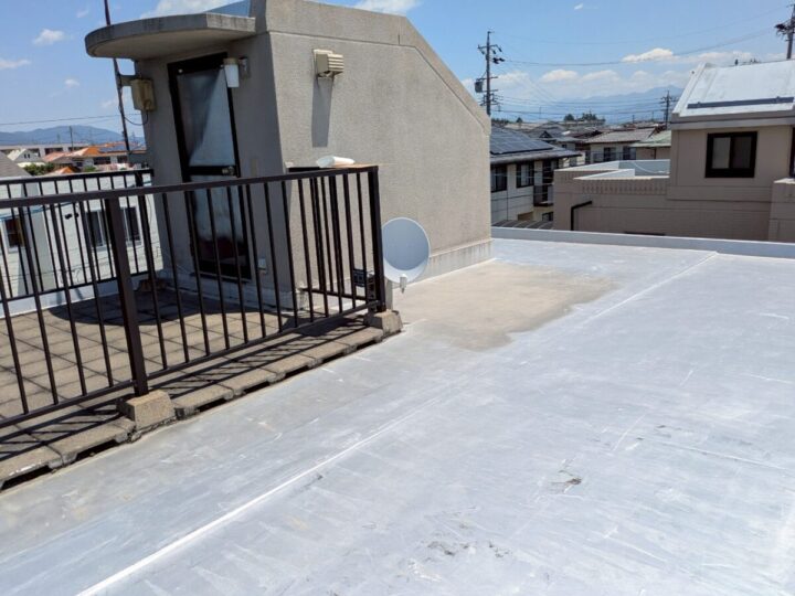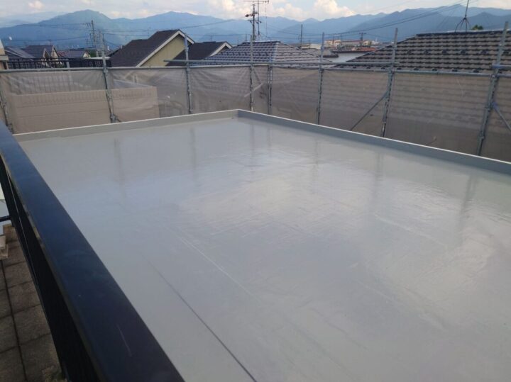 現状としましては、外壁では経年劣化により、塗膜の防水機能が低下している状態でした。お家の屋上のルーフバルコニーは床の塗膜の剥がれが出てきている箇所が確認出来ました。