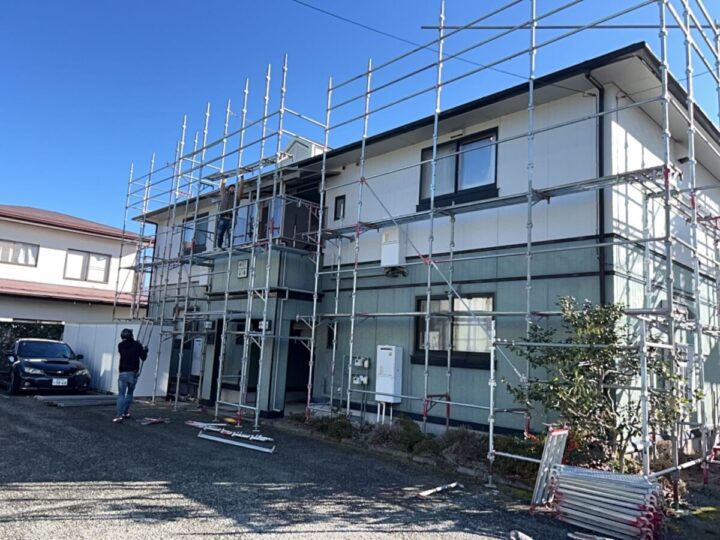 安全や周辺への飛散防止のために足場を仮設します。