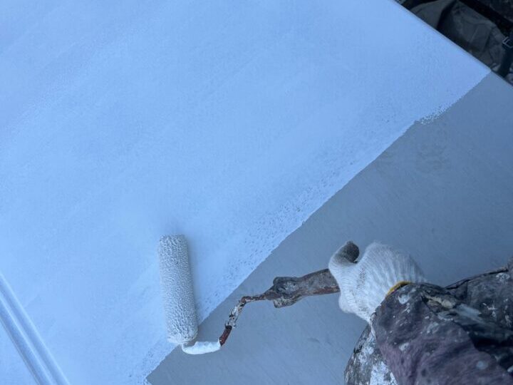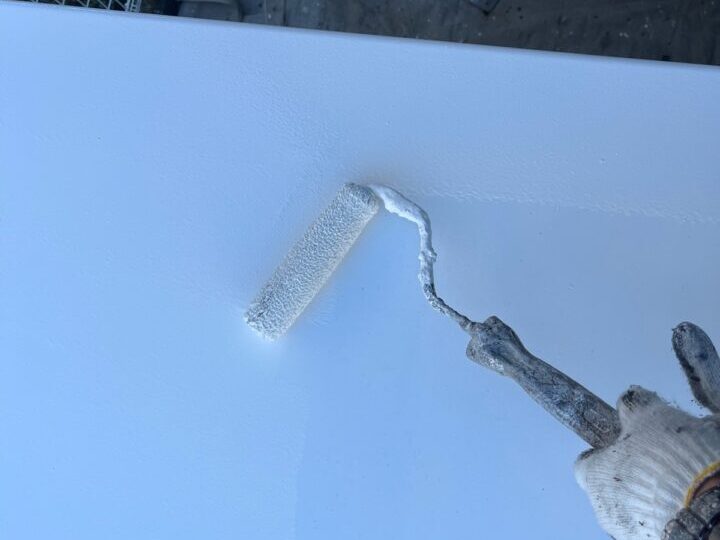 下塗りをした後、刷毛やローラーを使用し塗り残しがないよう丁寧に塗装します。