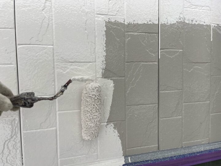 下塗り後、塗料の性能を発揮できる塗膜にする為、上塗りを2回行います。
