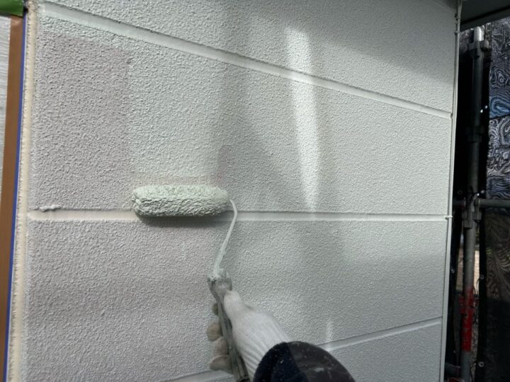 下塗り後、塗料の性能を発揮できる塗膜にする為、上塗りを2回行います。