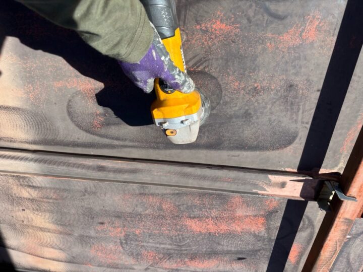塗料の密着性を高めるため、表面に細かなキズをつけていきます。