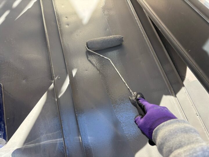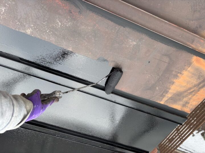 下塗りをした後、刷毛やローラーを使用し塗り残しがないよう丁寧に塗装します。
