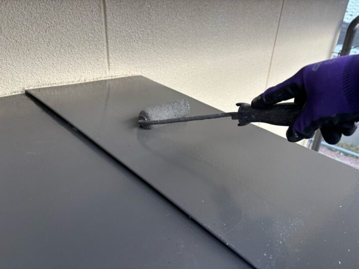 下塗り後、塗料の性能を発揮できる塗膜にする為、上塗りを2回行います。