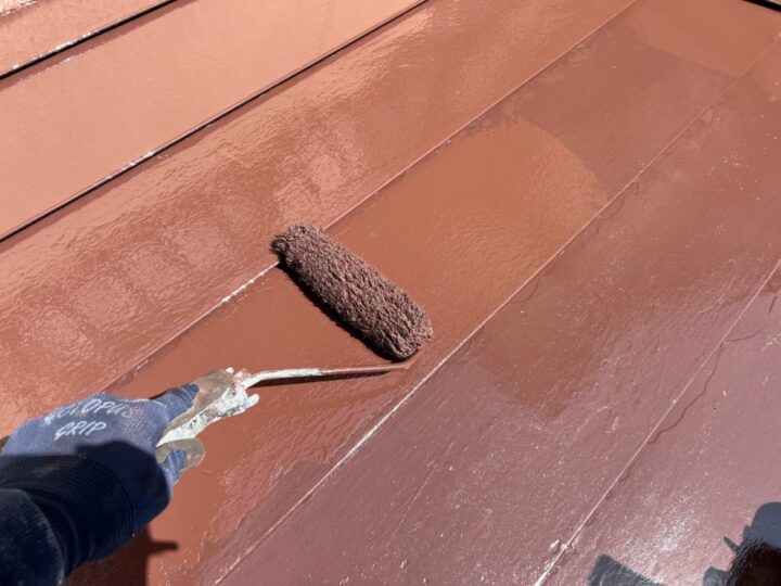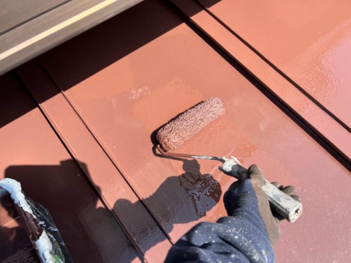 瓦棒葺き屋根上塗り(1回目)