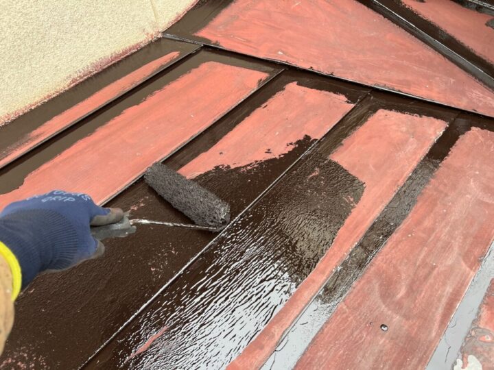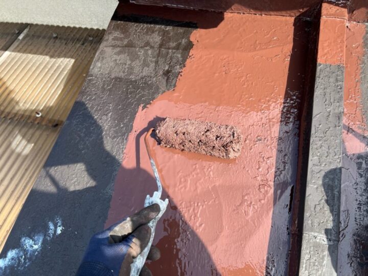 下塗りをした後、刷毛やローラーを使用し塗り残しがないよう丁寧に塗装します。