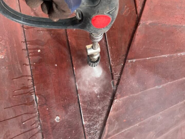 業務用の高圧洗浄機を使用して、汚れやごみを洗い流します。