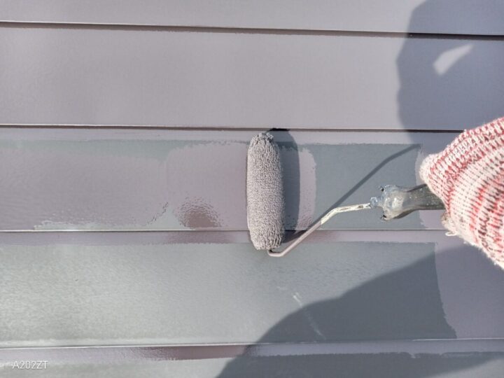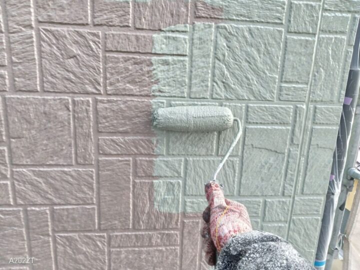 下塗り後、塗料の性能を発揮できる塗膜にする為、上塗りを2回行います。