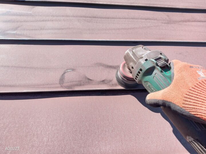 塗料の密着性を高めるため、表面に細かなキズをつけていきます。