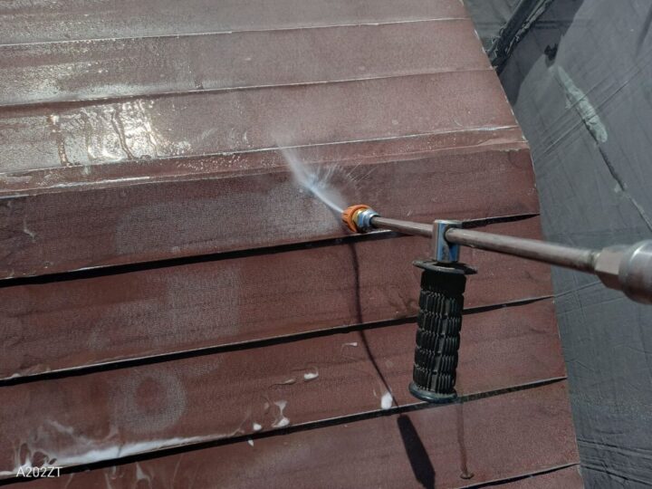 業務用の高圧洗浄機を使用して、汚れやごみを洗い流します。