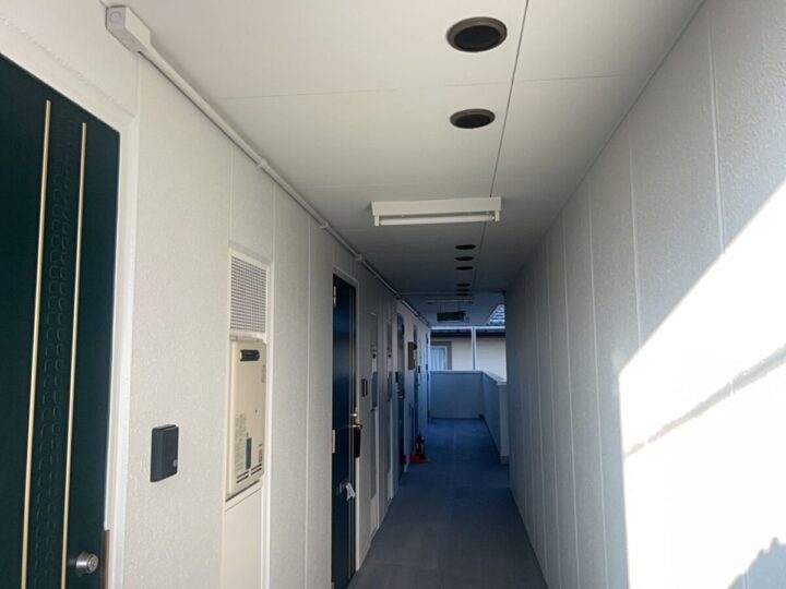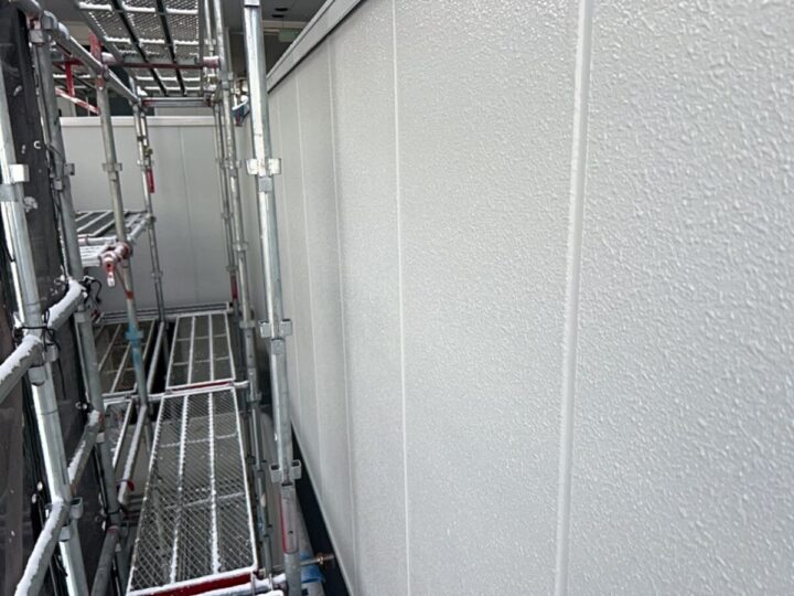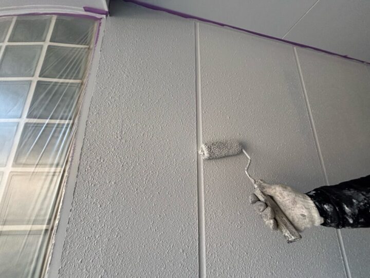 下塗り後、塗料の性能を発揮できる塗膜にする為、上塗りを2回行います。