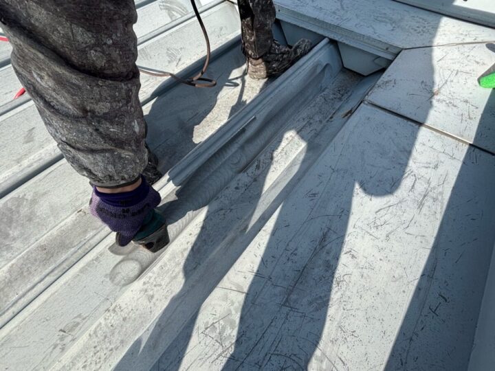 塗料の密着性を高めるため、表面に細かなキズをつけていきます。