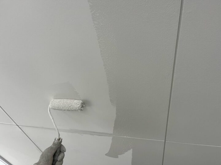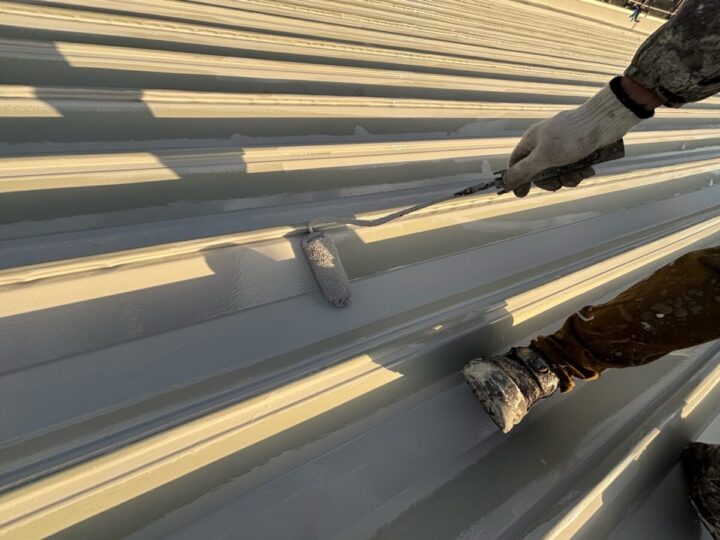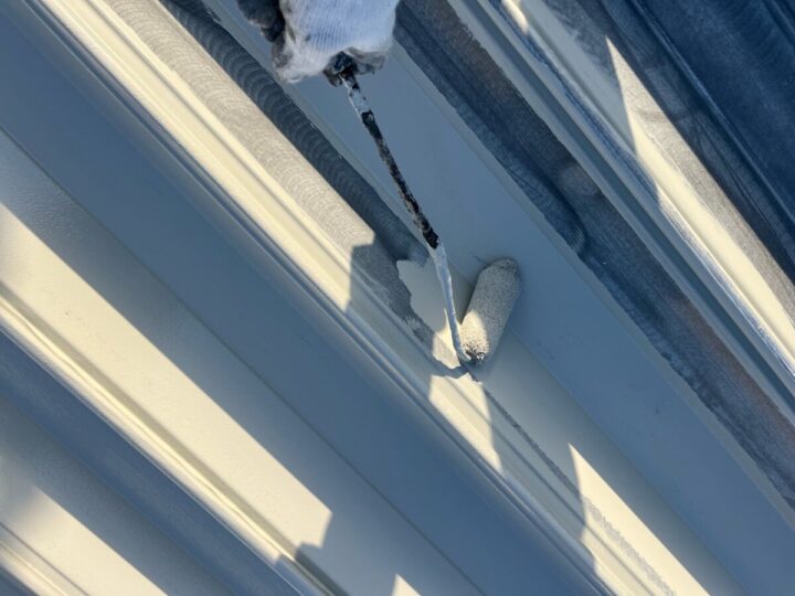 下塗りをした後、刷毛やローラーを使用し塗り残しがないよう丁寧に塗装します。