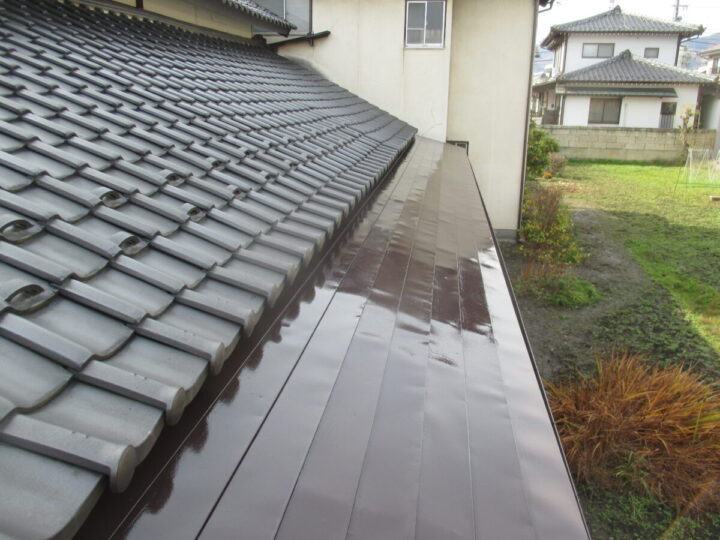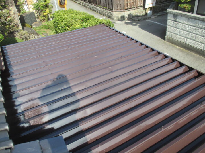 | 使用材料 | 屋根:スーパーシリコンハイブリッド(コーヒーブラウン、関西ペイント) 雨樋:ガルバリウム鋼板 波トタン:0.25mmガルバリウム鋼板 |